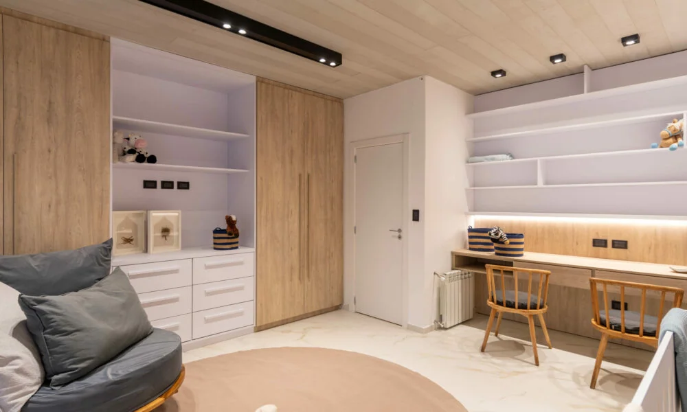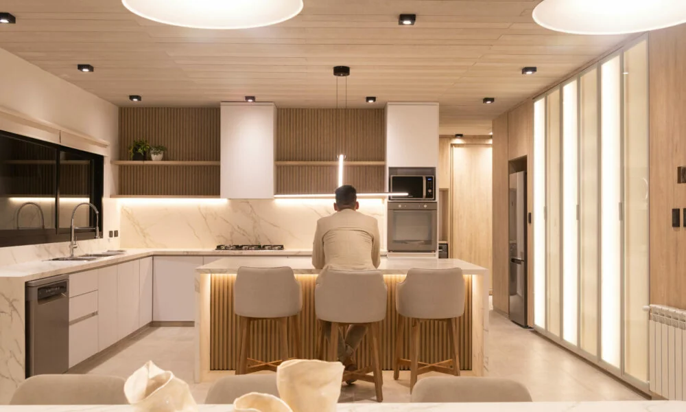 Otra característica destacada es la incorporación de un home office con entrada independiente desde la fachada. Este espacio, concebido para responder a las demandas de la era post-pandemia, permite recibir visitas laborales sin interferir con la privacidad de los demás integrantes de la familia. Este enfoque hacia la independencia funcional refuerza la versatilidad del diseño.