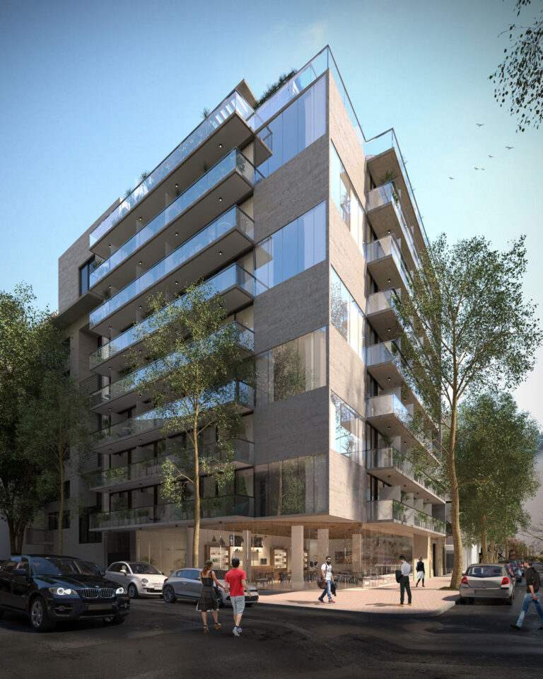 Este proyecto en esquina, al igual que gran parte de los últimos trabajos del Estudio, se resuelve conjugando inteligentemente las posibilidades del entorno urbano. En ese sentido, sobre la calle Cabello, el edificio se retira 4 metros a partir del tercer nivel para respetar la construcción lindera de protección histórica. Por otro lado, sobre Lafinur, una operación de enrase posibilita al edificio tomar mayor altura que la permitida por código. Tabiques de hormigón armado se intercalan sobre la esquina componiendo una fachada que se destaca por su simpleza e interpretación de su tiempo.