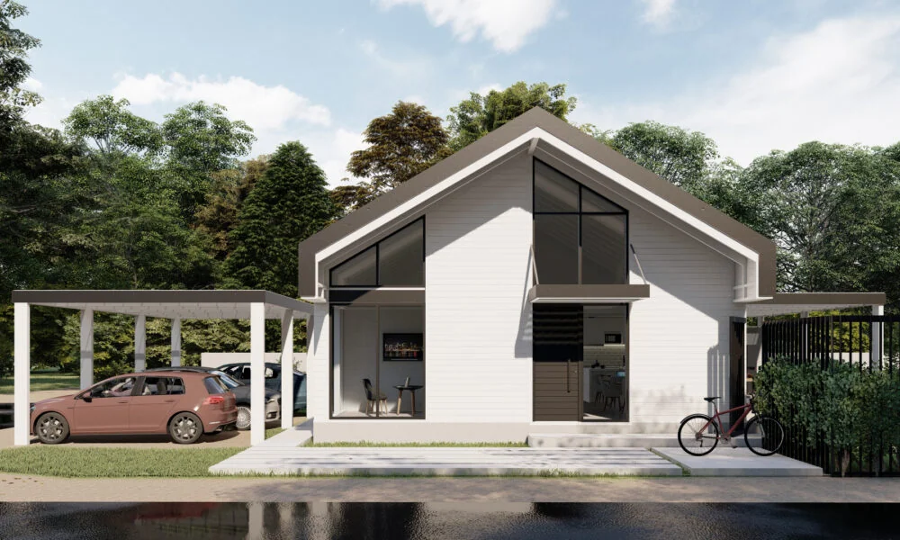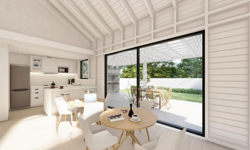 El tercer proyecto destacado de 3T Construcciones es la Casa al Sol, una vivienda que reinterpreta uno de los modelos del Plan Procrear con un enfoque innovador y sostenible. Elevada del suelo y construida en madera, esta casa se implanta en la parte trasera de la parcela para aprovechar al máximo la luz solar y el contacto con la naturaleza. Con un diseño que prioriza la integración de espacios interiores y exteriores, esta casa ofrece un ambiente confortable y acogedor para sus habitantes, demostrando una vez más la versatilidad y el potencial de la construcción con madera.