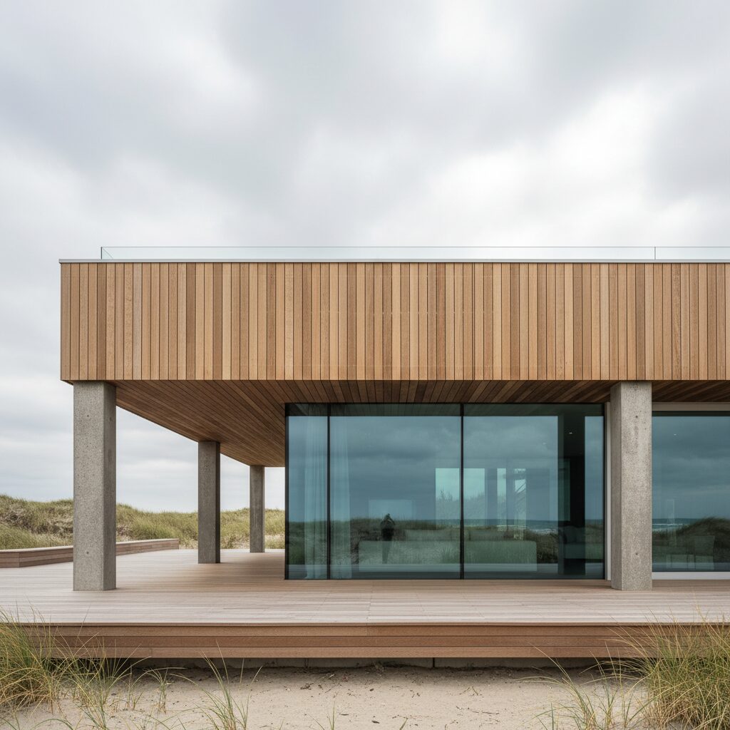La **protección contra agentes externos** es el segundo frente. La salinidad del ambiente marino es una fuerza corrosiva implacable. Materiales como el PVC de alta calidad, aluminio anodizado, maderas con tratamientos especiales (autoclave) y sistemas de doble o triple vidrio hermético son fundamentales para aberturas. Para la envolvente, se prefieren revestimientos exteriores de bajo mantenimiento y alta resistencia a la intemperie, como fibrocemento con recubrimientos cerámicos, porcelanatos técnicos o sistemas de fachadas ventiladas que protegen de la humedad y optimizan la inercia térmica. La selección de pinturas y selladores debe enfocarse en productos elastoméricos y de poliuretano, formulados para resistir la radiación UV y la agresividad salina.