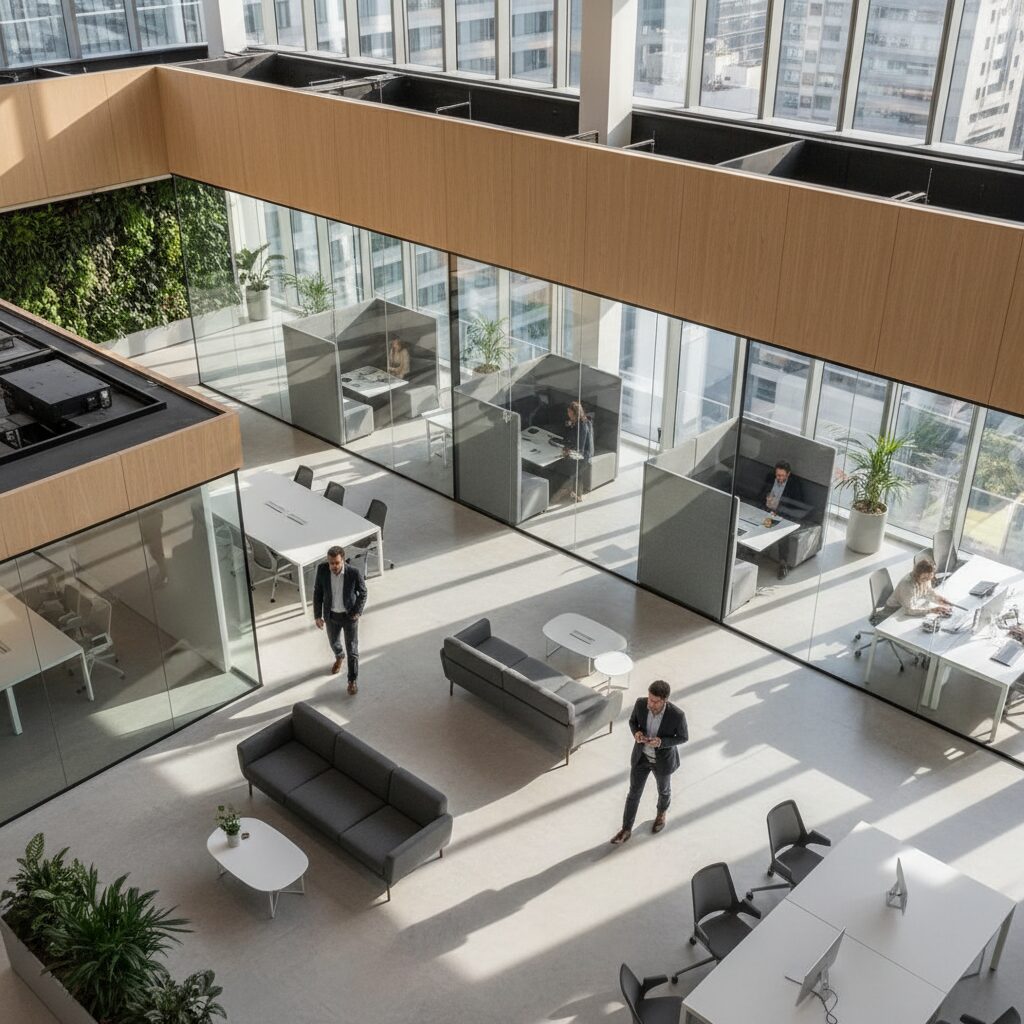 El modelo de oficinas híbridas, en su fase madura, se entrelaza indisolublemente con la filosofía del ‘Activity-Based Working’ (ABW). Esta aproximación va más allá de la mera flexibilidad horaria o locacional; postula que el diseño del espacio debe ofrecer una diversidad de entornos, meticulosamente curados para apoyar las distintas actividades que un profesional realiza a lo largo de su jornada. Desde zonas de concentración profunda que minimizan las distracciones sensoriales, hasta espacios vibrantes para la colaboración espontánea, pasando por cabinas acústicas para videollamadas privadas, áreas de relajación o meditación, y rincones informales para encuentros fortuitos.