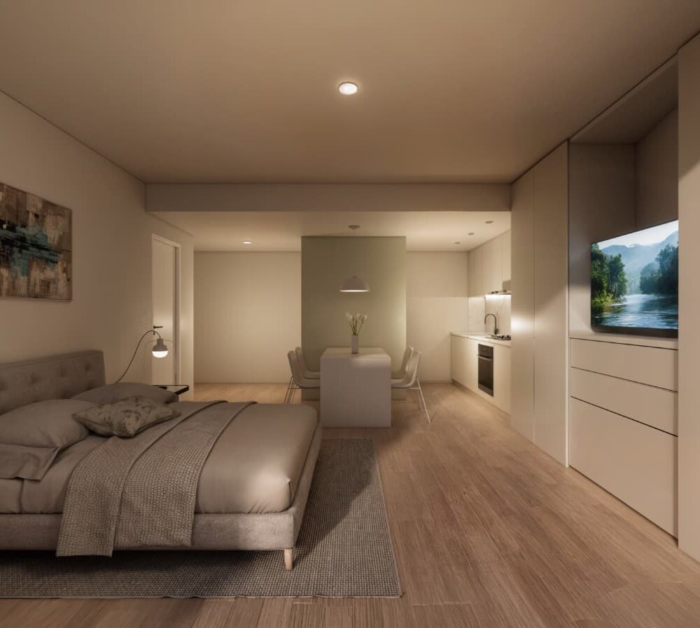 Desarrollo de 1.100 m² que equilibra la calidez residencial con un diseño contemporáneo, a cargo del Estudio Hall junto con FENAM Desarrollos. A metros de Plaza Irlanda, se integra a un entorno con alta conectividad y oferta recreativa/gastronómica. La organización por niveles prevé: del 1° al 3° piso, 1 monoambiente + 1 dos ambientes + 1 tres ambientes; 4° piso: 1 dos ambientes + dúplex; 5° piso: dúplex + su terraza; planta baja: cocheras + local comercial. La obra avanza en etapa de hormigón, bajo estándares de seguridad y supervisión directa del equipo de Flores Servian Construcciones