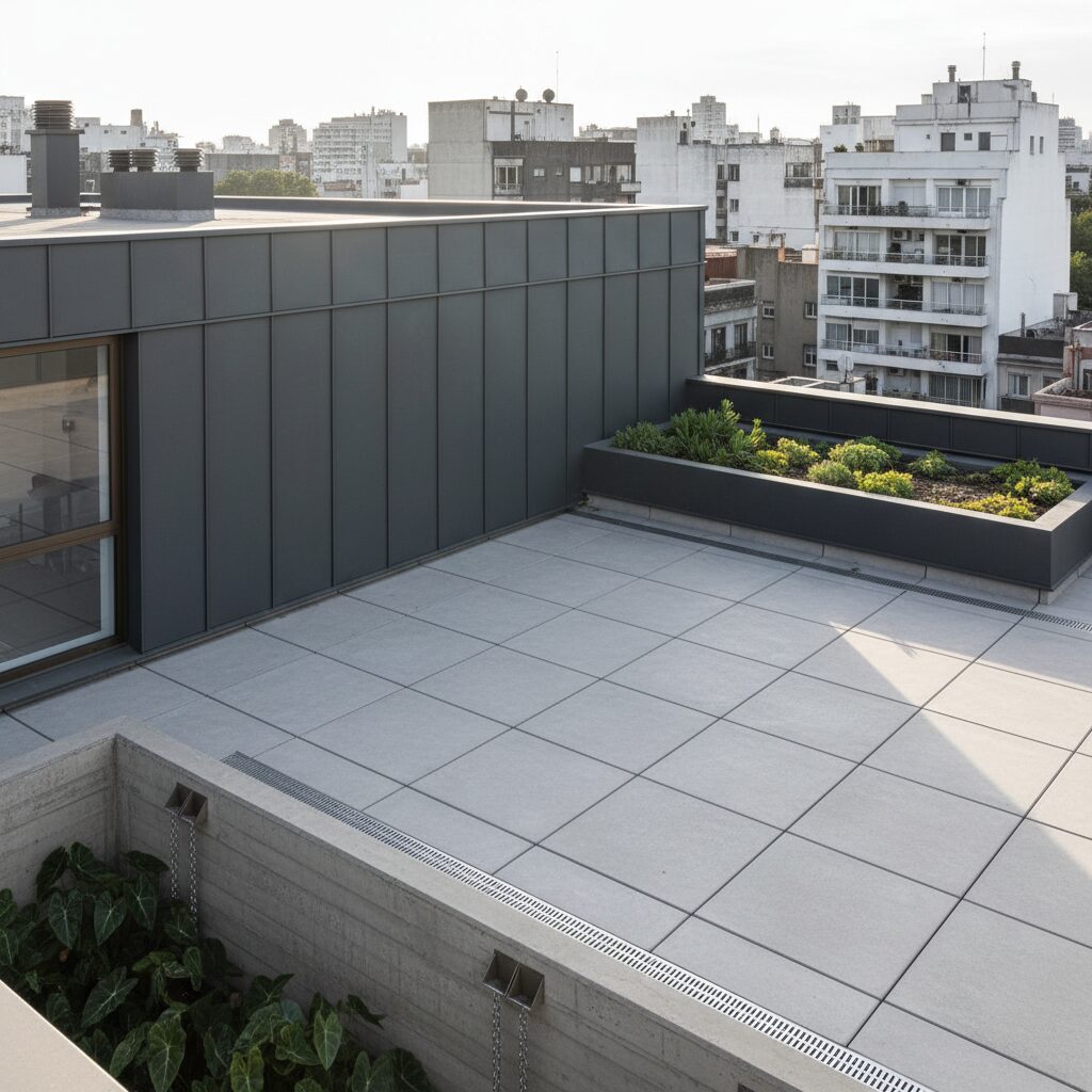 1. **Diseño Inteligente y Preventivo:** Va más allá de lo estético. Implica el cálculo preciso de pendientes para una evacuación rápida de aguas, la integración de sistemas de drenaje pluvial eficientes (sumideros y canales de generosa capacidad, libres de obstrucciones), y el correcto dimensionamiento y ubicación de juntas de dilatación que acomoden los movimientos estructurales sin comprometer la estanqueidad. La modelación BIM (Building Information Modeling) se presenta como una herramienta indispensable para identificar posibles puntos de conflicto y debilidades en el envolvente antes de que el primer ladrillo sea colocado, anticipando futuros problemas.