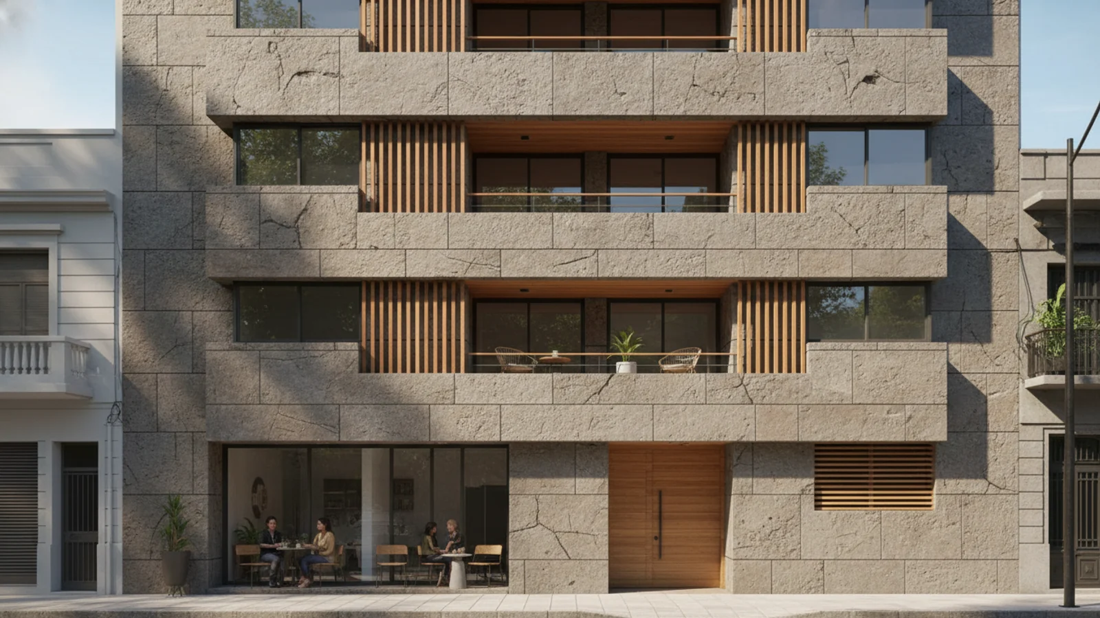 Observamos en el paisaje construido reciente, especialmente en desarrollos de escala media y en la reconversión de áreas urbanas, una inclinación hacia fachadas que presentan una pátina natural con el paso de las estaciones. Esto no implica un retorno a estilos historicistas, sino una aplicación contemporánea de principios de diseño que valoran la autenticidad material. Edificios de líneas sobrias, con balcones o terrazas funcionales y interiores bien resueltos, se benefician enormemente de acabados que no compiten con el entorno, sino que dialogan con él, adaptándose a la luz y al clima uruguayo de forma sutil.