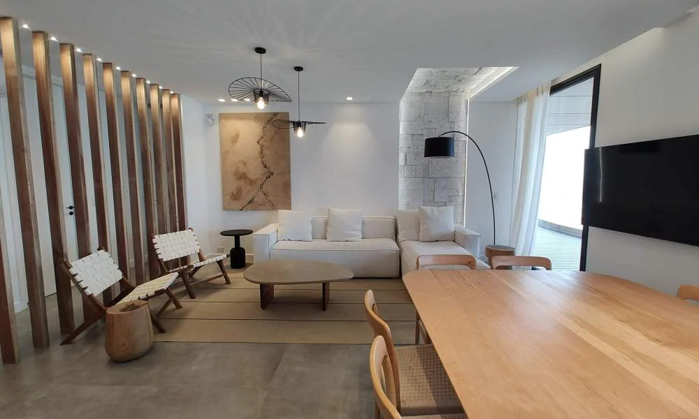 En un departamento frente al mar, es crucial aprovechar al máximo la luz natural y las vistas panorámicas. Esto se logra mediante la disposición estratégica de los muebles y la incorporación de ventanales amplios que permiten la entrada de luz y aire fresco.